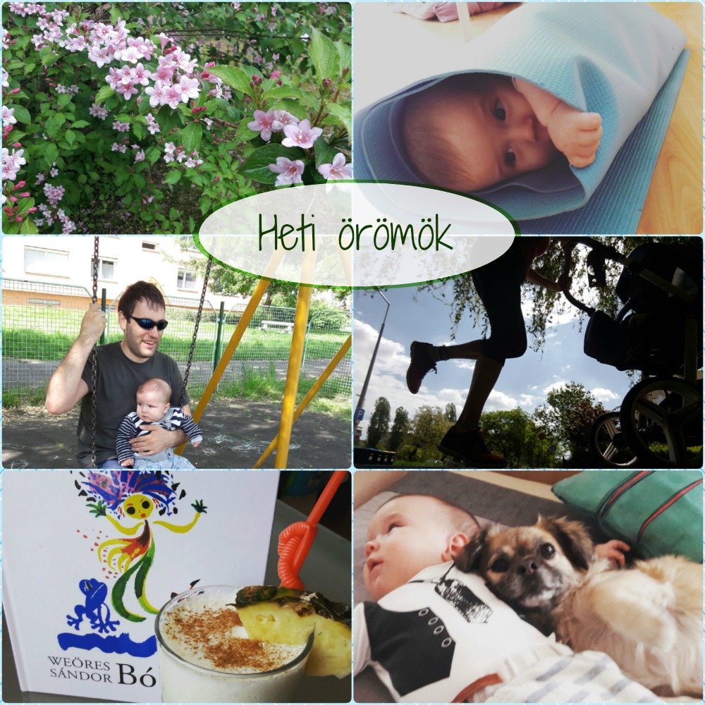 Ez a hét meglepően nyugalmas és élvezetes volt! Kolosnak alig fájt a foga, igaz ki sem jött semmi, mintha megijedtek volna azok a fogak valamitől, vagy csak éppen pihennek. Ez nekem is pihenést és kikapcsolódást jelentett, kettőnknek, hármunknak pedig sok örömteli pillanatot. ♣ Babakoncerttel és némi vírusos megfázással indítottuk a hetet. A megfázás járt elöl, mert már szombaton úgy keltünk fel mindhárman, hogy köhögtünk és fájt a torkunk. Hétfőre tetőződtek a tünetek. Engem ütött ki a legkevésbé a betegség, Szabit a legjobban (ez régen is mindig így volt), Kolos pedig a középmezőnyben ellavírozott, akarom mondani elprüszkölt. Másodszor került már használatba az orrszívó minálunk. Emlékszem az első megfázásnál totál lelkifurdalásom volt, magamat okoltam, amiért Kolos beteg. Azt éreztem, hogy én nem vigyázok rá eléggé. Most valahogy túlkerekedtem ezen, sőt azt gondolom, hogy a világunk tele van vírusokkal meg bacikkal, természetes, hogy időnként találkozunk velük és leküzdjük őket. Felfedeztem magamban végre némi anyai szigort. 🙂 Az orrszívózásban határozott és következetes vagyok, ha kell éjjel is alkalmazom. Nagy károkat tud okozni a felgyülemlett savó a gyermek fülében, arcüregeiben, és egy középfülgyulladás sokkal fájdalmasabb, mint egy cseppet sem fájdalmas, csak drasztikusnak kinéző orrszívás. Egyébként Kolos nem is igazán sír miatta, inkább csak kiabál. A másik szigorom a tévé és a számítógépes játékok, meg a kütyük, melyeket a legeslegártalmasabbnak gondolok ennyi idős gyereknél. Szerencsére tévénk nincsen, Szabi pedig csak akkor játszik, amikor Kolos alszik, vagy le van mással foglalva. Eddig nem voltam túl boldog a gyerekorvosunktól, de észrevettem, hogy nem antibiotikumot felírogatós fajta, és ennek most örülök. Sőt, sok napfényt ajánlott és némi orrcseppet a gyógyuláshoz, és ez nagyon szimpatikus volt. Hamar túl is lettünk az egészen, mára némi köhögés maradt hátra, de mindannyian gyógyultak vagyunk. Ja és a babakoncert mi fán terem? Én nem nagyon tudtam elképzelni, csak azért írom le, mert lehet, hogy más sem. Egy teremben, jó nagy szőnyegen sok-sok baba mászik, kúszik, fekszik és totyog. Két ember pedig halkan játszik fagotton, fuvolán és zongorán. Kolos a szokásos fejhangon énekelt tőle és egyébként nyugodtan nézelődött. A többi baba is jól viselte, szerintem megnyugszanak a zenétől. Ráadásul nem is egyedül voltunk, hanem rég nem látott ismerősökkel találkoztunk, bandáztunk, sétáltunk utána. ♣ Eljárogatunk szerdánként a közeli templomos mondókás klubba. Most ez a heti programunk a ringató helyett. Nagyon megszerettem ezt a helyet is. Szégyen vagy sem, gyógypedagógus létemre az itt elhangzó versek és mondókák többségét nem ismertem. Sőt, rájöttem hogy míg dolgoztam is, az utóbbi időben el voltam igénytelenedve gyermekprózát illetően, és nem is frissítettem magam egy ideje. A napokban a Libriben éppen akciósak a gyerekkönyvek, így be is szereztem pár darabot az új inspiráció hatására. Jó nagy Képes állatábécét, mert Kolos imádja nézni az állatos képeskönyveket, Weöres Sándor Bóbitáját és Vlagyimir Szutyejev Vidám mesék könyvét. Weöres Sándor gyermekeknek írt versecskéi híresek az ütemükről, hangzásukról, kipróbáltam, és valóban Kolos már most is élvezi, ha ebből a kötetből énekel, verselek neki. A Vidám mesék még nem kötik le, csak az akció miatt szereztem be (na meg egy kicsit azért, mert az én kedvenc meséim vannak benne). A klubban amúgy nem csak mondókázás van, hanem a program után a gyerekek játszanak szabadon, mi anyukák meg beszélgetünk egy kicsit. Nekem nagyon jót tesz, jó hallani a sokszor sok gyerekes anyukáktól, hogy nekik is hasonló gondjaik vannak, mint nekem. ♣ Képzeljétek tegnap kimenőn voltam. Nem is akárhol, hanem egy fürdőben áztattam a testem egy leánybúcsú keretein belül. Ez aztán az extra kikapcsolódás! 🙂 Induláskor fellépett a szokásos lelkifurdalás, imádkoztam, hogy valami jöjjön közbe, hogy ne kelljen menjek. Igaziból találtam is egy tucatnyi kifogást, de csírájában elfojtottam őket és kirugdostam a seggem a házból. 🙂 Gondoltam olyanokra, hogy pici baba mellett ilyet csinálni önzőség, úgysem tudok majd nyugodtan fürdőzni. Szabinak biztos megterhelő órákon keresztül Kolossal lenni, Kolos lehet, hogy el sem fogadja majd a cumisüveget, netán kevés tejet hagytam ott neki stb. Tovább is van, mondjam még? Az anyai lelkiismeretem számtalan kifogást képes kreálni, hogy miért ne mozduljon el a gyerek mellől, miközben mindennél jobban esne egy kis kikapcsolódás. Szóval megtettem. Nem anyák között voltam, nem babatémáról volt szó, és három órán át senki sem sírt fel körülöttem. Az elején nehezemre is esett a beszélgetés a hétköznapi témákról (már elfelejtettem, hogy mikről szokás még beszélni), de aztán belelendültem. Isteni volt lebegni a vízben és a lazaságban. 🙂 Itthon pedig béke volt és öröm! Szabi lelkesen mesélt, hogy Kolos milyen édes, jó fiú, mennyit nevetett, beszélt. Megállás nélkül, mondta, hogy: – Bebebebebebe…. Micsoda? Hiszen ez már a ciklikus gagyogás, még sosem hallottam tőle. Végre! Végre! Végre! – Szabi nagyon boldog volt, hogy egy fejlődési lépcsőnél ő volt Kolos mellett és én lemaradtam róla. 🙂 Bebebe! Hát én meg attól voltam boldog, hogy ez a két fiú így szereti egymást és feltalálják magukat, hogy Szabinak ilyenkor mennyire megnő az apai kompetencia-érzése, sokkal közelebb kerül egymáshoz apa és fia! Tetszik vagy sem, be kell látnom, hogy néha le kell lépjek mindhármunk érdekében. ♣ Nagyon szép volt a hétvégénk, sokat sétáltunk a környéken, hintáztunk Kolo